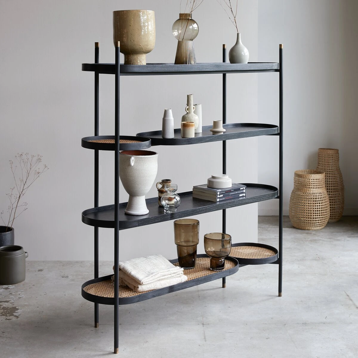 Très originale et inspirée d’horizons lointains, la bibliothèque en mindi et cannage Alix est à elle seule une pièce de déco très remarquée !