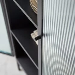 Directement inspirĂ© de l’ameublement factory, le vaisselier en mĂ©tal Annet sĂ©duit par son design tout en sobriĂ©tĂ© et par l’accord parfait des deux matĂ©riaux qui le composent : le mĂ©tal lisse protĂ©gĂ© par un revĂŞtement en poudre qui n’en change pas l’aspect et le verre trempĂ© texturĂ©. Les portes opaques, laissent deviner le contenu du vaisselier sans rĂ©ellement le dĂ©voiler, elles restent bien fermĂ©es grâce aux aimants et s’ouvrent avec des poignĂ©es discrètes. D’une Ă©lĂ©gance intemporelle tout en sobriĂ©tĂ©, c’est un meuble d’une belle facture, gĂ©nĂ©reux en rangement : il reçoit facilement la vaisselle et le linge de table. S’il est parfait au sĂ©jour ou au salon, le vaisselier en mĂ©tal Annet trouve aussi facilement sa place dans la chambre pour ranger des vĂŞtements pliĂ©s ou le linge de nuit. Dans une grande salle de bain, il organisera avec style les serviettes et produits de toilette. Â