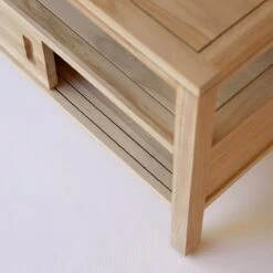 Vous aimerez son style sobre et naturel : un design simple caractérisé par des lignes droites, une teinte claire et une finition naturelle du bois de teck.
