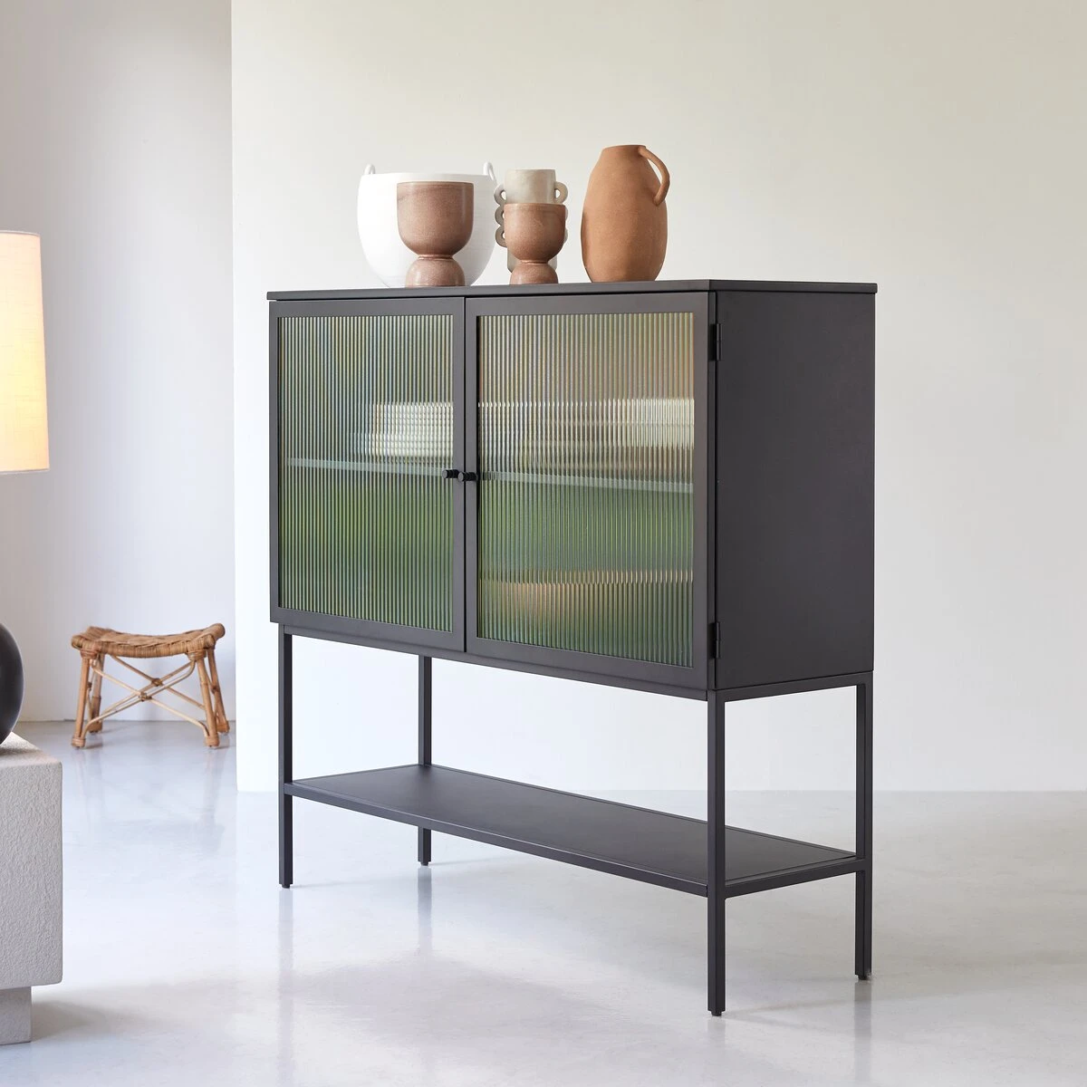 Le bahut en mĂ©tal Antonin se marie Ă la perfection avec la colonne et la vitrine de la mĂŞme gamme. Â