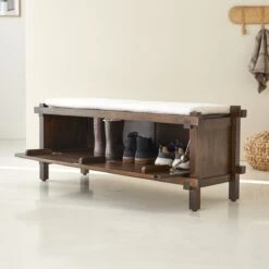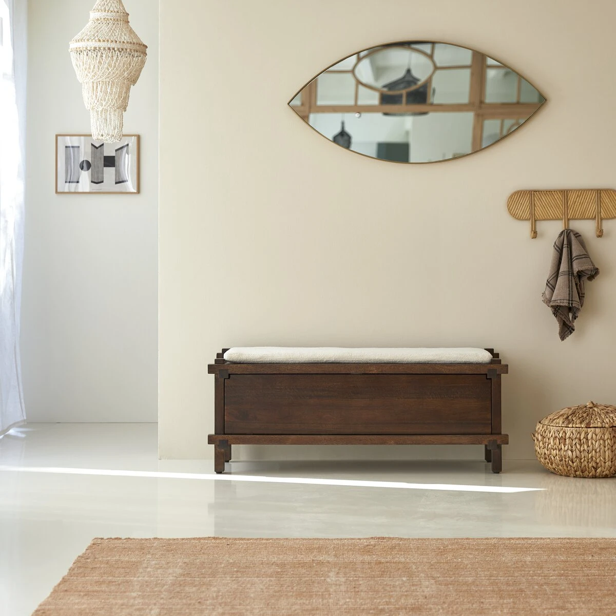 Un charme venu d’ailleurs pour un Ă©lĂ©ment d’ameublement pratique et astucieux… le meuble Ă chaussures Arko en manguier massif, permet de se chausser et de se dĂ©chausser confortablement : il suffit de s’asseoir sur son coussin et de ranger ensuite les chaussures dans le logement prĂ©vu Ă cet effet. IdĂ©al dans une entrĂ©e ou le vestiaire, il peut Ă©galement se placer en bout de lit. Il permettra alors de ranger aussi le linge de lit ou des Ă©lĂ©ments qu’on ne veut pas voir trainer dans la chambre Ă coucher.Â