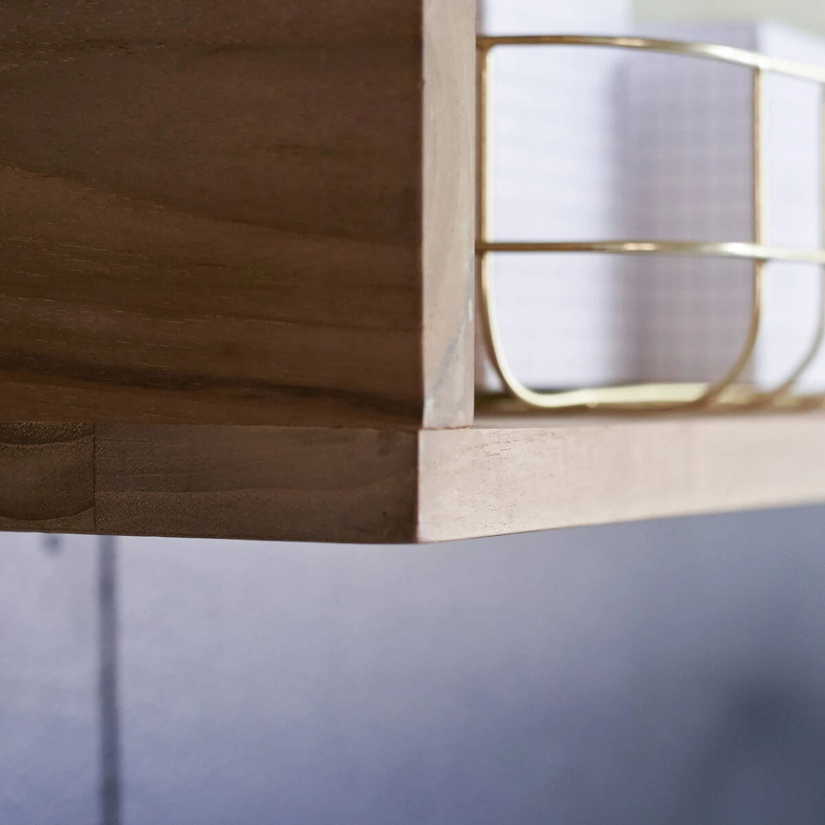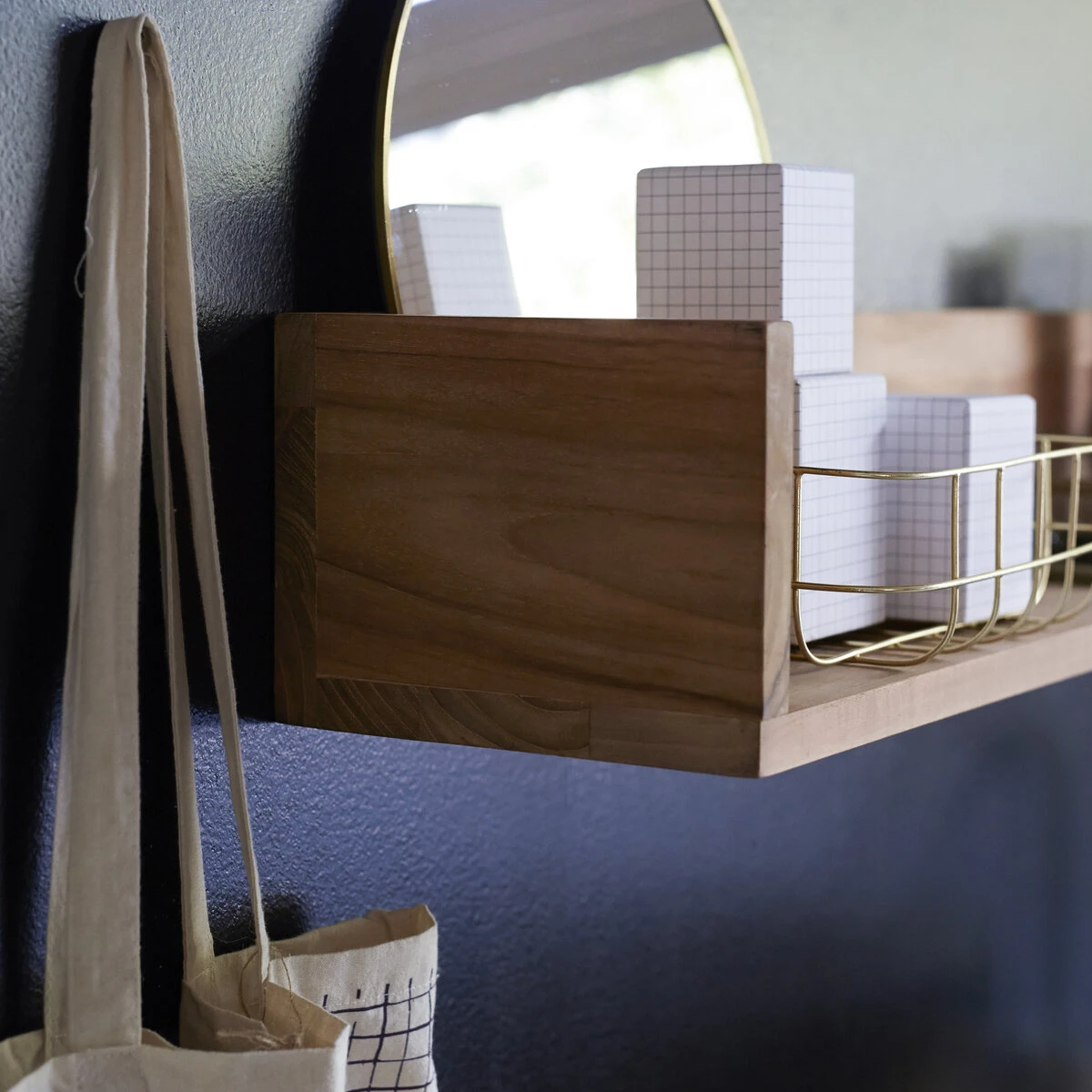 Astucieuse et graphique, l’étagère murale en teck massif certifié FSC® Arty reçoit tous ces jolis flacons qu’on accumule dans la salle de bain ou la salle d’eau. Elle reçoit avec autant de réussite des objets de déco ou des indispensables comme le dentifrice, la brosse à dents ou le peigne à cheveux.