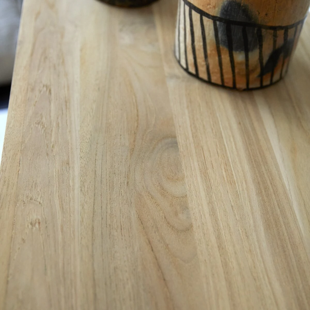 Particulièrement convoitĂ© en architecture et en mobilier, le teck est dense, rĂ©sistant Ă l’humiditĂ© et durable. Très esthĂ©tique, il affiche une Ă©lĂ©gance teintĂ©e d’exotisme et offre une large palette de nuances : miel clair, bronze ou brun avec des veinages sombres.