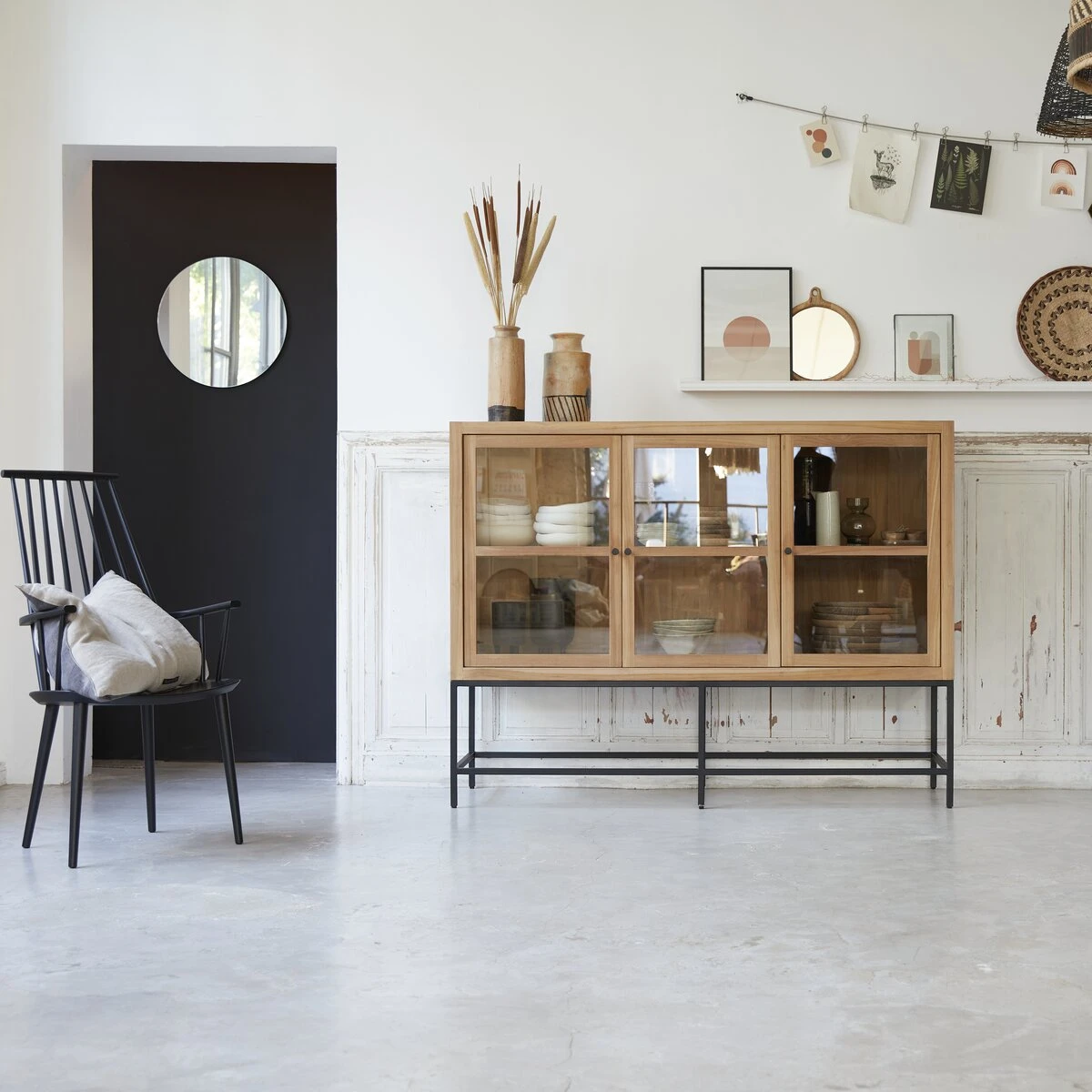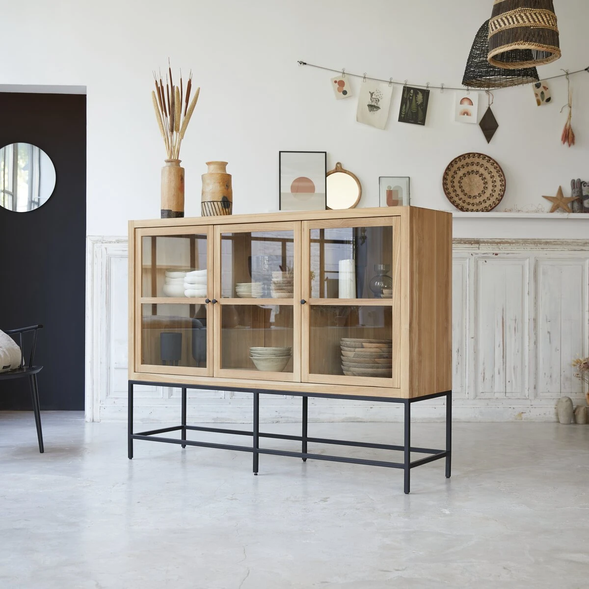 On aime la blondeur de son bois brut qui autorise toutes les associations de style et la lĂ©gèretĂ© visuelle confĂ©rĂ©e par un piĂ©tement en mĂ©tal. On compose une jolie mise en scène dĂ©co en disposant sur le dessus du vaisselier, bouquets, plantes, lampes et autres beaux objets…