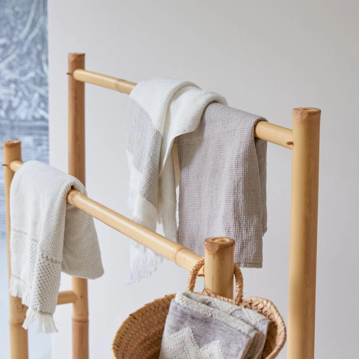 Apportez à votre salle de bain une touche asiatique grâce à notre porte serviette en bambou Balyss. Elle est composée de 2 tiges de bambou sur laquelle vous pourrez disposer toutes serviettes et linges à sécher. Elle offrira à votre pièce un dépaysement total grâce à sa structure en bambou véritable.