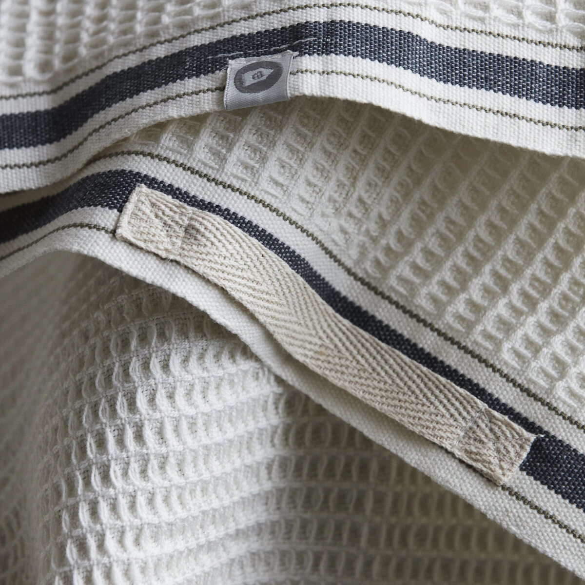 Eco-responsable, durable et beau – ce qui ne gâche rien – l’ensemble de 2 torchons en coton Bihar signĂ© House Doctor vous deviendra vite indispensable ! RĂ©alisĂ©s dans une matière certifiĂ©e OEKO-TEX® 100, la garantie qu’ils ne contiennent aucune substance nocive pour la santĂ©, ces torchons sont doux et absorbants : faire la vaisselle en devient presqu’un plaisir… Vous aimerez la texture gaufrĂ©e et l’harmonie des couleurs. Munis d’une patte d’accroche, ce sont des torchons que vous aurez plaisir Ă laisser visibles dans la cuisine. De belles dimensions, ils sont en plus, très pratiques.