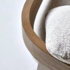 Le fauteuil Boti en Mindi massif et tissu bouclĂ© est dĂ©clinĂ© dans une version chaise Boti.Â