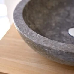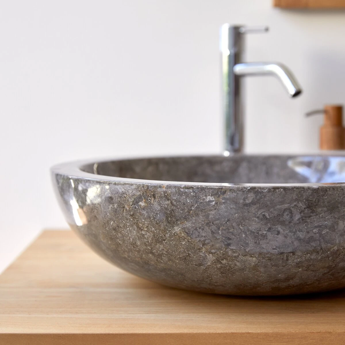 Vous aimerez la ligne tout en rondeur et le design contemporain de la vasque en marbre Calypso Grey.Â