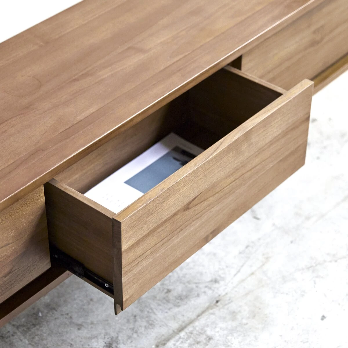 Parfait pour organiser tout le matériel multimédia, le banc suspendu en teck Circa est aussi proposé en version 1 tiroir et 2 niches. Il existe aussi en dimension 110 cm, version 1 niche + 1 tiroir et version 2 tiroirs.