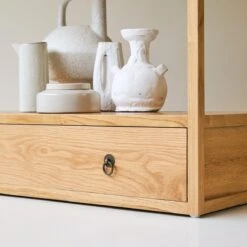 Dâinspiration exotique, la console avec tiroir en chĂȘne massif Clovis est idĂ©ale pour habiller une cloison dans le salon ou le sĂ©jour⊠Elle reçoit avec Ă©lĂ©gance des objets dĂ©co (par exemple, une sĂ©rie de vases comme sur notre photo) et peut aussi accueillir des bouquets de fleurs, des magazines ou servir de desserte. Dans ses niches, on y glisse les magazines ou notices Ă garder toujours Ă portĂ©e de main et dans le large tiroir, tout ce quâon ne veut pas voir traĂźner dans la piĂšce.