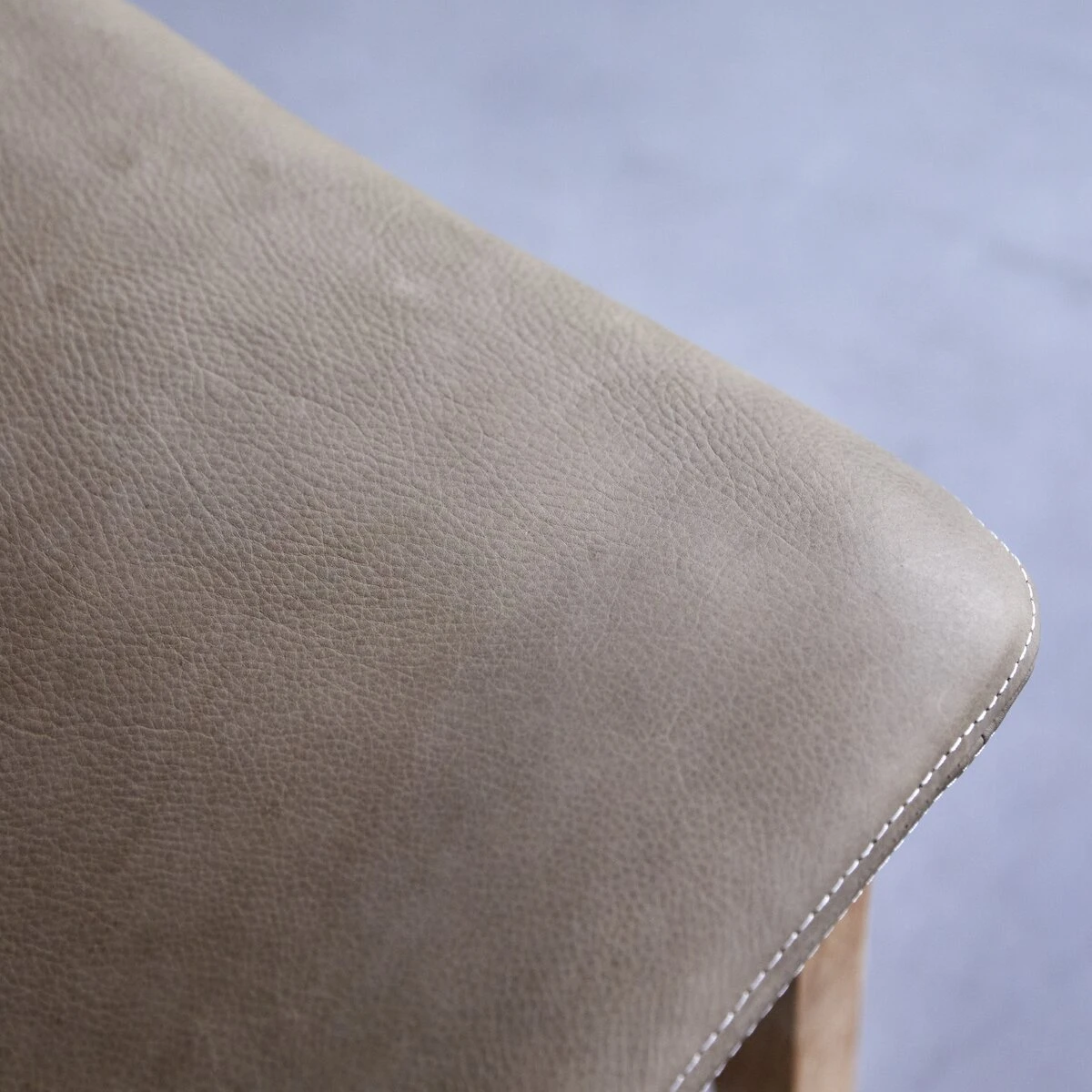 On aime lâalliance des deux matiĂšres authentiques, le bois et le cuir, et les angles adoucis.