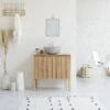 Accompagnez notre meuble salle de bain Coline de vasque en marbre, terrazzo ou pierre de rivière que vous retrouverez dans notre sélection de vasques. Pour un effet agrandissant n’hésitez pas à décorer votre salle de bain de miroir, ils vous apporteront un maximum de luminosité. Pour une décoration plus impressionnante, ornez votre pièce de grand miroirs tels que notre miroir Bahya duo.