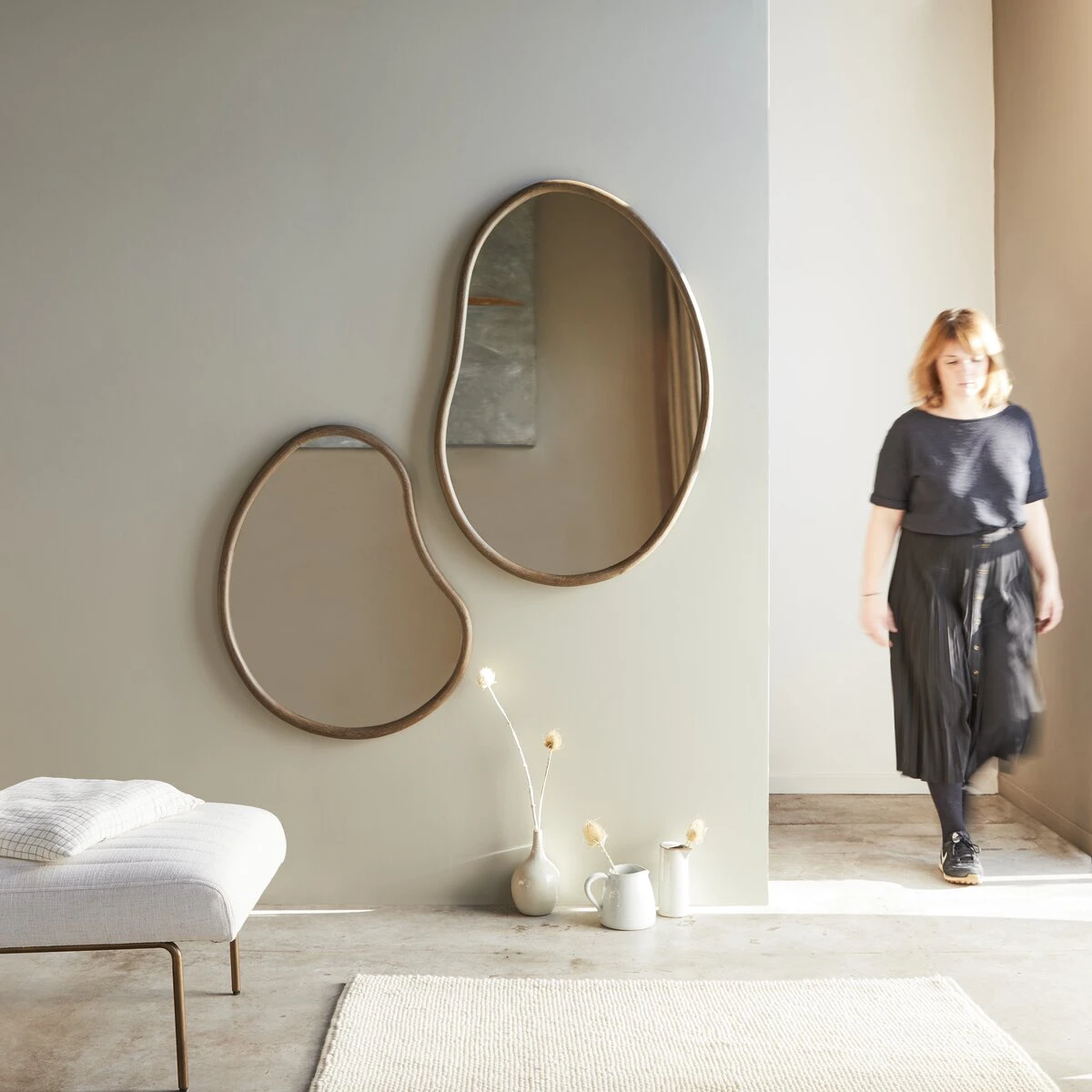 A poser seul ou Ă combiner avec son petit frère (comme sur notre photo), le miroir en mindi 85 cm.Â