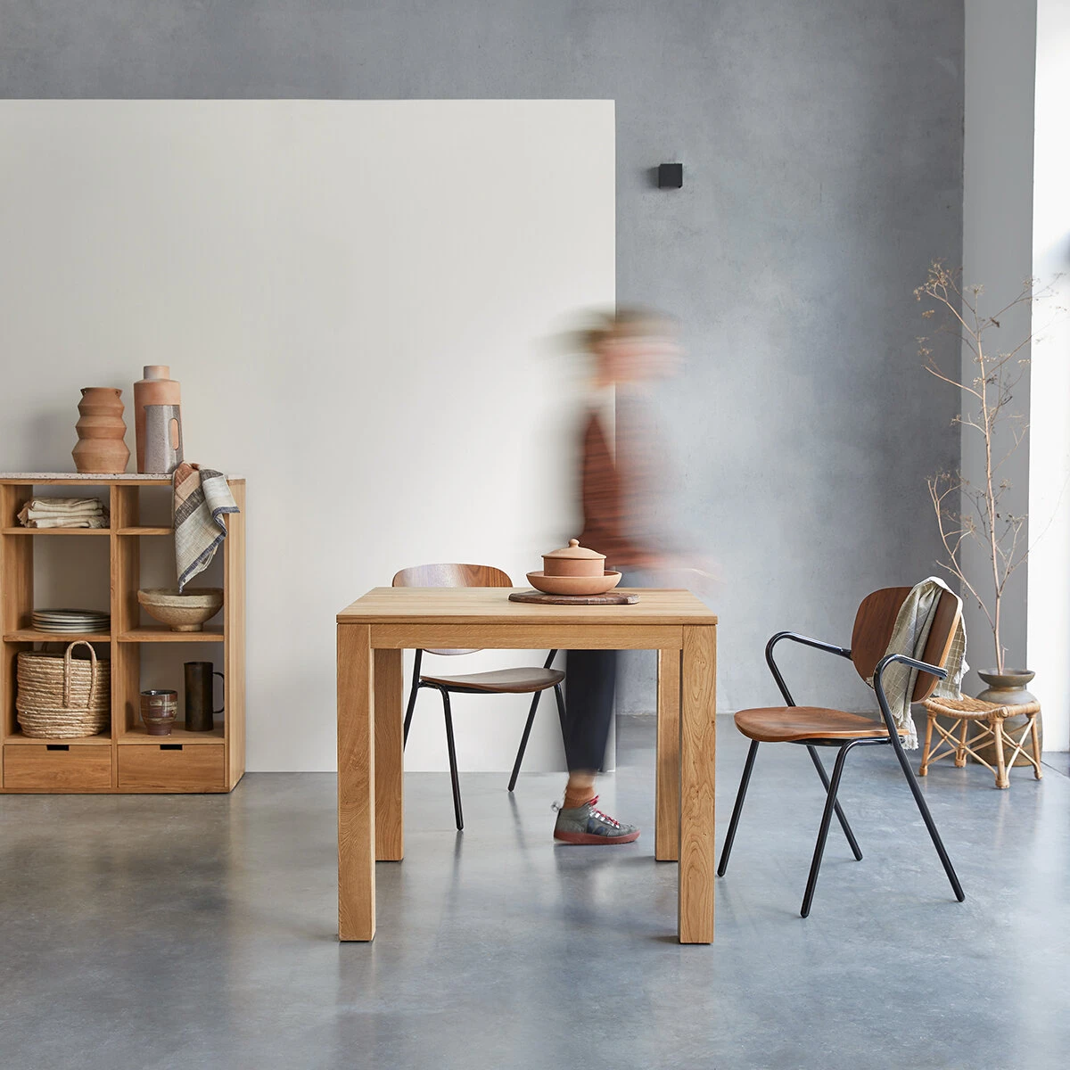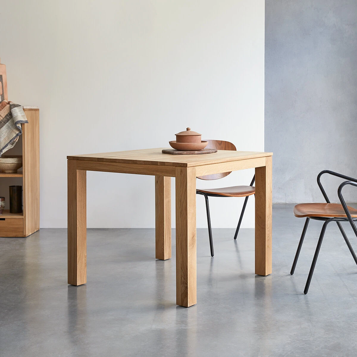 La table en chĂȘne massif Eden affiche de belles qualitĂ©s : travaillĂ©e dans un chĂȘne massif certifiĂ© FSCÂź (lâassurance quâil provient de forĂȘts gĂ©rĂ©es de maniĂšre responsable), elle est fabriquĂ©e en Europe et offre une conception astucieuse. Sa forme carrĂ©e et ses pieds situĂ©s aux angles permettent de recevoir 2 Ă 4 personnes parfaitement installĂ©es : les pieds ne gĂȘnent pas lâassise, particuliĂšrement apprĂ©ciable pour les repas ou les sessions de jeux de sociĂ©tĂ© !