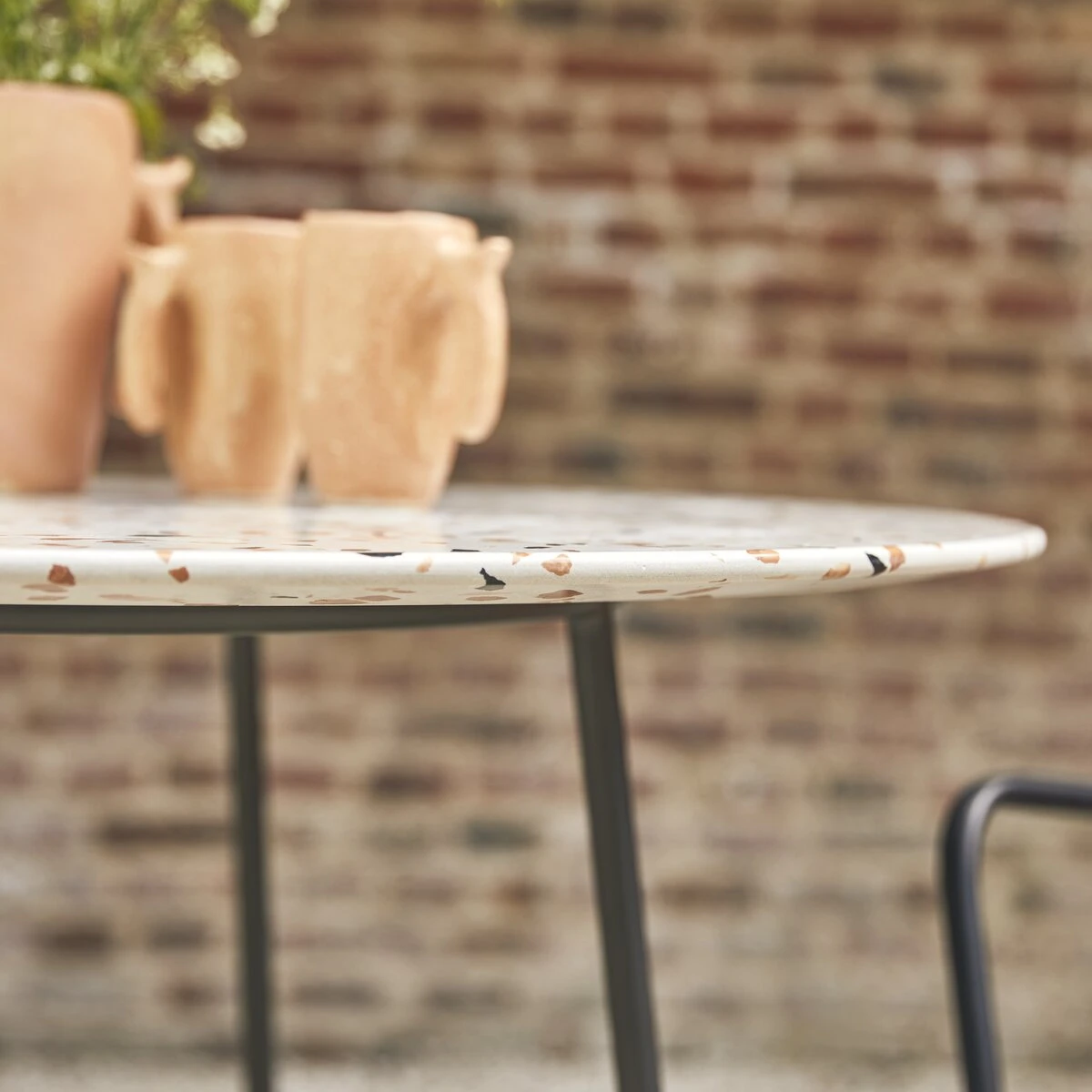 Parfaite pour 4 personnes, la table en terrazzo premium et mĂ©tal Elio brown existe aussi en green, white , grey. Elle vous est Ă©galement proposĂ©e en version rectangulaire brown ou green pour accueillir jusqu’à 6 personnes. Â