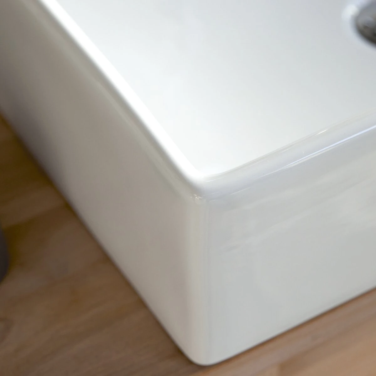 La vasque en céramique existe aussi en version ronde et en version carrée.