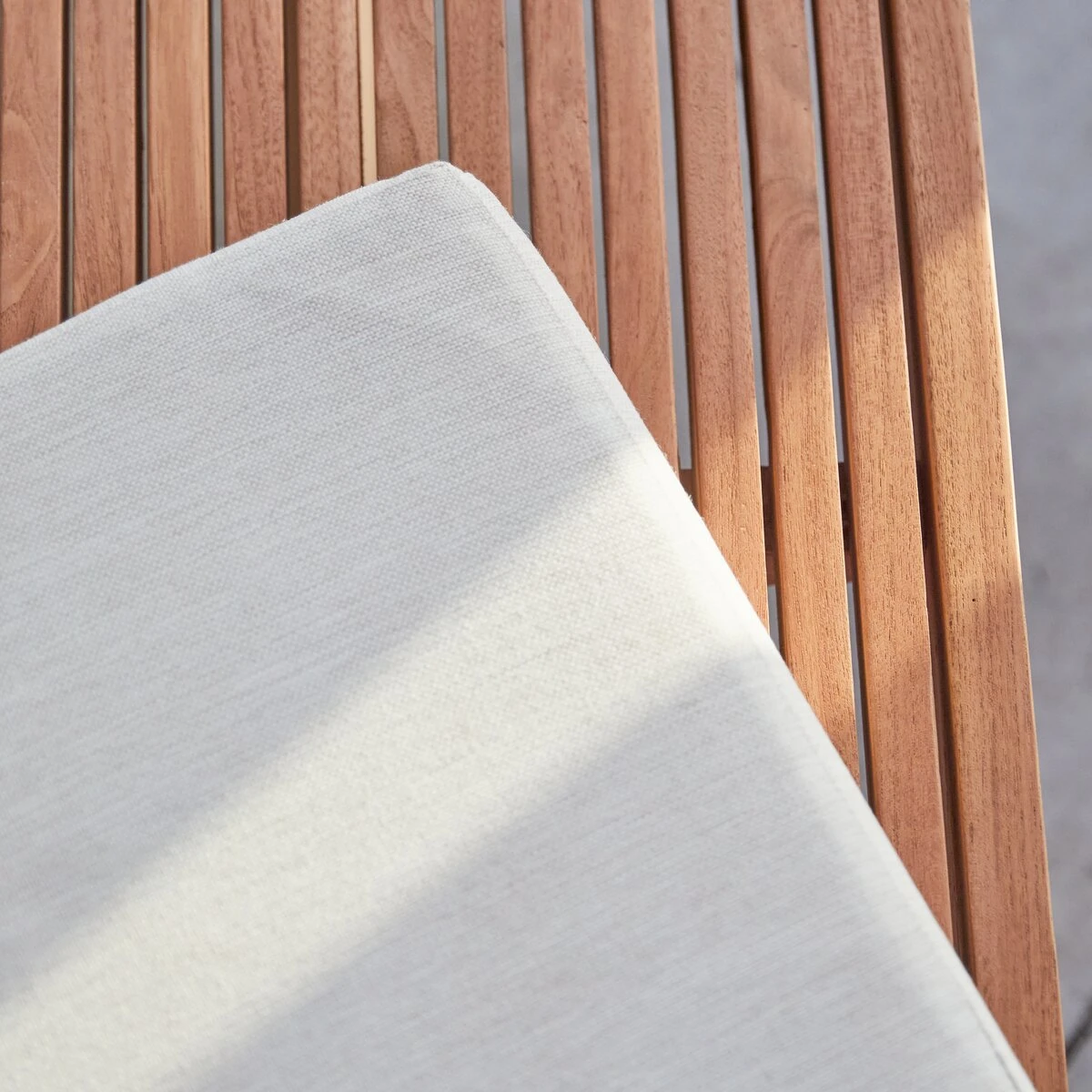 Comme un petit air d’évasion avec le banc en teck massif Fado, un meuble premium qui conjugue prestations de qualité, lignes pures et crée une atmosphère singulière au séjour qui prend alors des allures de jardin d’hiver… une tendance très en vogue chez les designers contemporains ! Ce superbe banc est travaillé dans un bois verni réputé pour ses qualités de résistance aux incidents quotidiens, à l’usure et aux intempéries. Il offre un plan latté de très belle facture, un piétement équilibré pour alléger visuellement l’ensemble, une visserie en laiton et des coussins déhoussables et lavables en machine. Associé à la table en teck massif Fado, il compose un coin repas plein de personnalité… qui s’installe au jardin au gré des envies et des besoins.