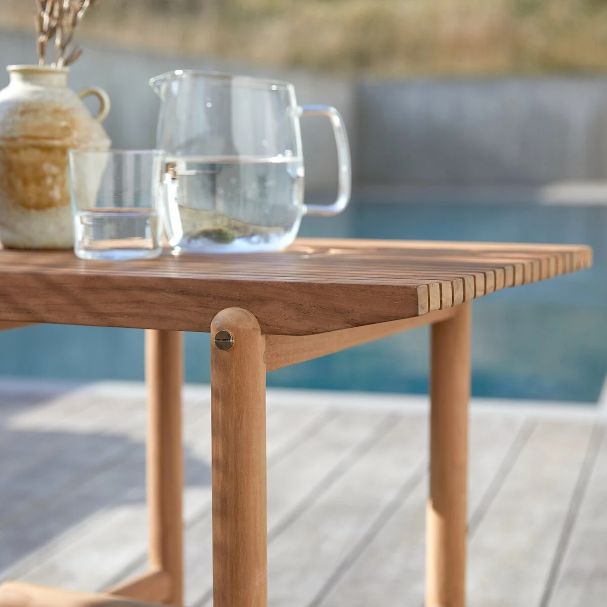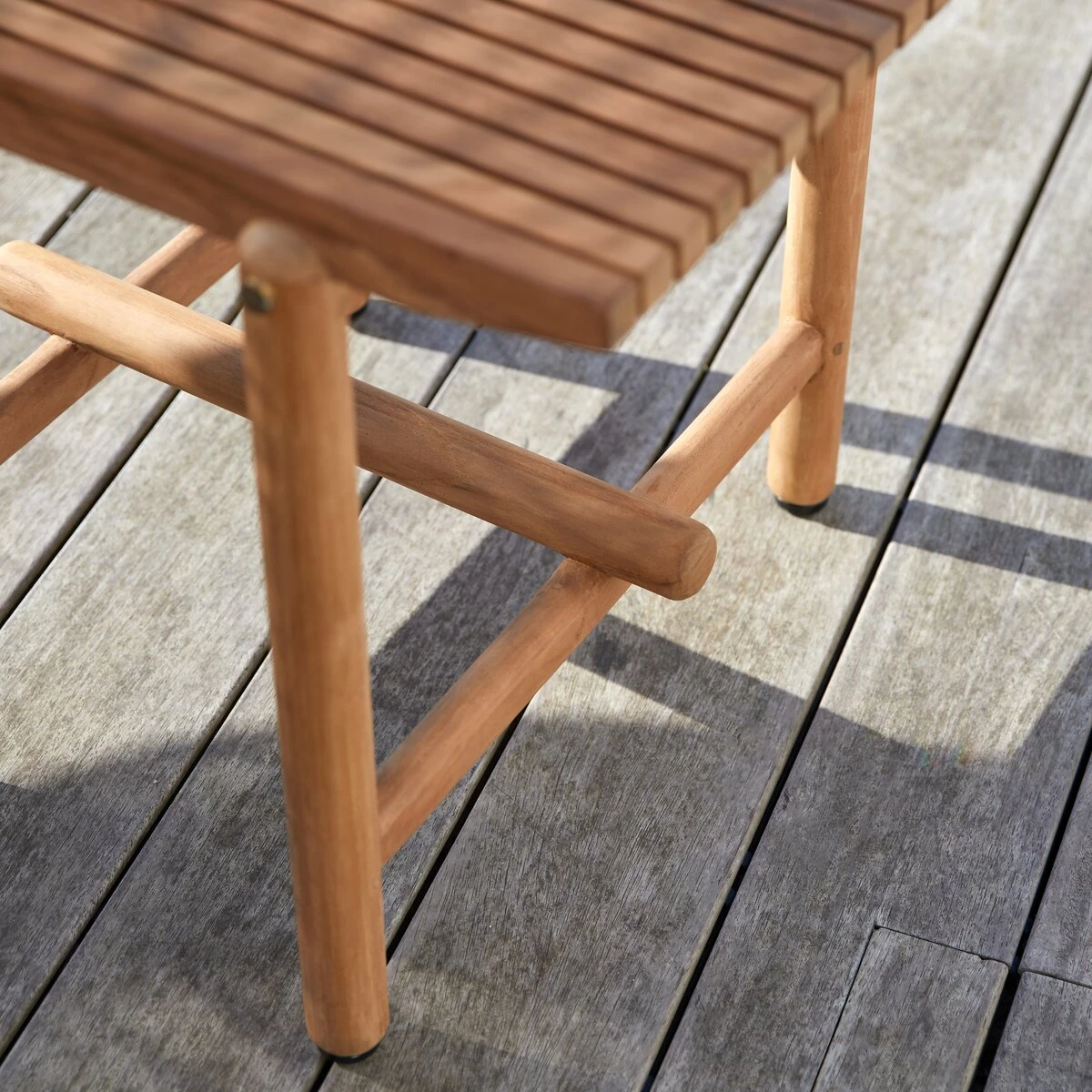 Vous serez séduit par le soin apporté à la réalisation du bout de canapé de jardin en teck massif Fado, soin que vous retrouverez sur toutes les pièces de notre collection Fado, des meubles premium faits pour durer longtemps et qui affichent une vision singulière de l‘esprit In & Out, cette tendance qui fait entrer à l’intérieur, les meubles conçus pour l’extérieur. Ainsi, ce bout de canapé trouvera-t-il assez naturellement sa place au salon. Visserie en laiton.