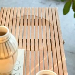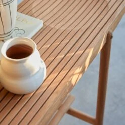 Idéal pour mettre en majesté les vases et autres objets déco, la console en teck massif Fado devient aussi desserte ou petit bureau. Si elle est parfaite au séjour ou au salon, elle trouve aussi sa place dans une entrée, le bureau… et même sur la terrasse !