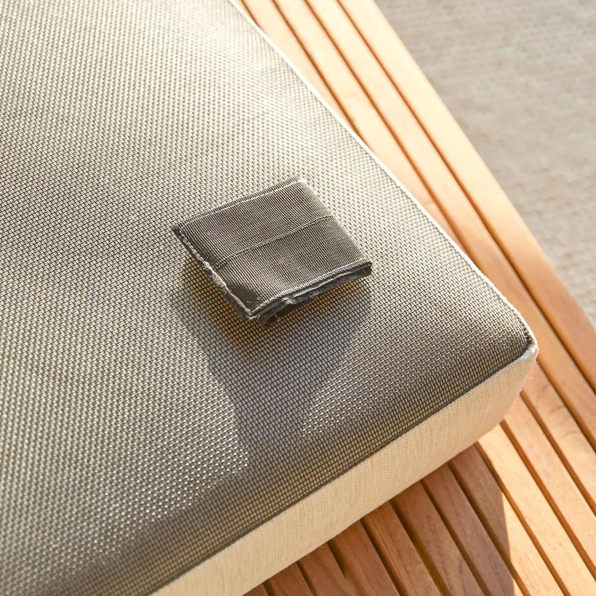 La mĂ©ridienne en teck massif Fado : un bel esprit Lounge pour un meuble haut de gamme qui invite Ă faire des pauses dans nos quotidiens très animĂ©s ! On aime la qualitĂ© premium de sa conception : le bois verni qui la compose est rĂ©putĂ© pour ses qualitĂ©s de rĂ©sistance aux assauts du quotidien, la visserie est en laiton, les coussins dĂ©houssables et lavables en machine. A noter aussi l’esthĂ©tique du superbe plan lattĂ© !  Â