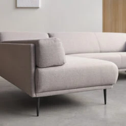séduire ! On aime sa capacité à se métamorphoser selon qu’on pose les coussins accoudoirs ou non (pour un style ultra-minimaliste ou plus cosy), son tissu certifié OEKO-TEX®, ce qui garantit l’absence de substances ou de produits chimiques nocifs et ses esthétiques pieds en métal, suffisamment hauts pour permettre à un balai de se glisser sous le meuble.