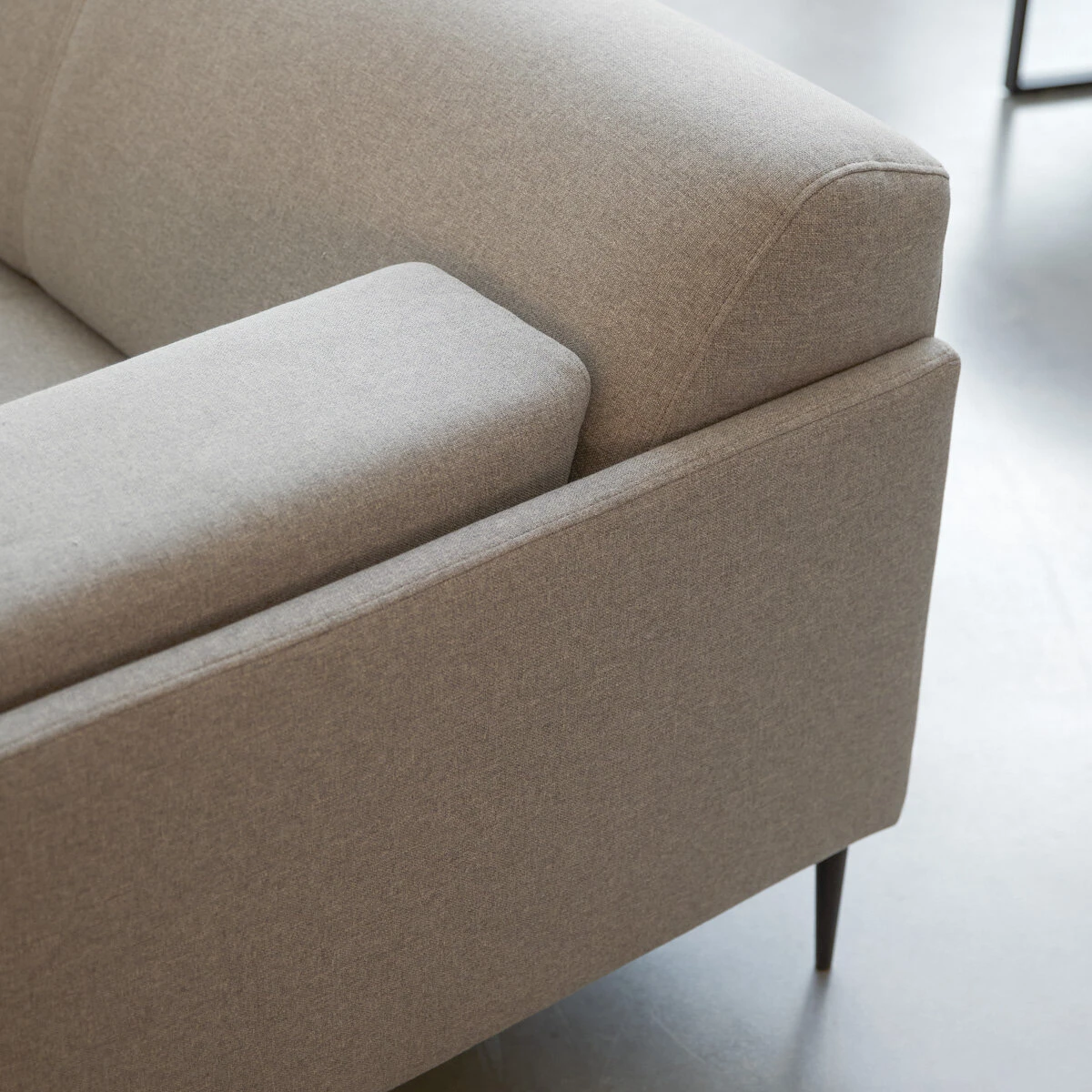 Une belle sobriĂ©tĂ© de lignes pour le canapĂ© Finn qui se mĂ©tamorphose au grĂ© des envies ! Selon que vous posiez les coussins accoudoirs ou non, vous obtiendrez un canapĂ© Ă l’allure diffĂ©rente : ultra-minimaliste et japonisante sans, plus cosy avec. TravaillĂ© dans un tissu certifiĂ© OEKO-TEX®, ce qui garantit l’absence de substances ou de produits chimiques nocifs, ce canapĂ© est Ă©quipĂ© de pieds en mĂ©tal qui contribuent Ă l’élĂ©gance de l’ensemble et sont assez hauts pour permettre Ă un balai de se glisser sous le meuble. Â