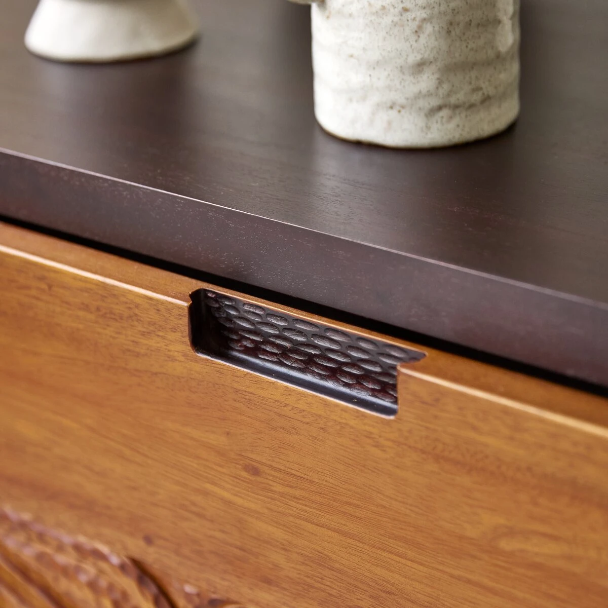 Une façon originale et pleine de personnalitĂ© d’organiser tout votre matĂ©riel multimĂ©dia : le banc TV en acajou massif Frida, l’atout dĂ©co de votre salon ! On aime ses portes sculptĂ©es du plus bel effet, son inspiration ethnique qui invite au voyage sans quitter la maison et la belle gĂ©nĂ©rositĂ© de rangement. On apprĂ©cie aussi la conception originale qui permet de tout ranger facilement et le jeu bicolore qui accentue encore l’esthĂ©tique atypique de l’ensemble. Une de ces pièces qu’on remarque au premier regard !