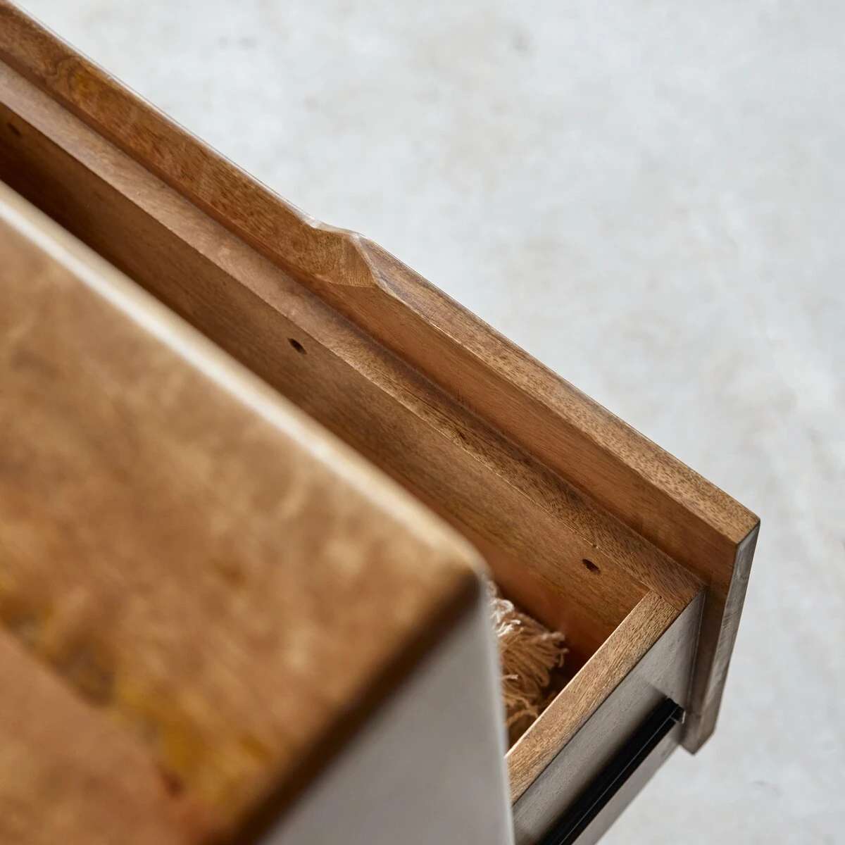 Singulier et robuste, le manguier offre une large palette de tonalités et des veinures apparentes. D’une belle densité, il est considéré comme un arbre à fibres dures, donc solide et résistant. Le manguier est un modèle de protection de l’environnement : il n’est exploité qu’une fois arrivé à maturité.