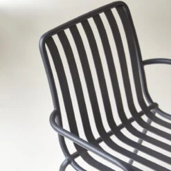 Le fauteuil Gaby en mĂ©tal black surfe sur la tendance in and out, très en vogue dans les intĂ©rieurs contemporains : aujourd’hui, on aime que l’extĂ©rieur devienne une extension de la maison… le fauteuil Gaby voyage du sĂ©jour Ă la terrasse avec rĂ©ussite ! IdĂ©al autour de la table du repas, dedans ou dehors, il devient fauteuil dĂ©tente animĂ© d’un bon gros coussin ou d’un plaid tout doux… Au grĂ© des envies ou des besoins, on l’installe aussi dans la chambre pour dĂ©poser les vĂŞtements le soir, dans un bureau ou dans une entrĂ©e spacieuse. D’allure contemporaine, on le marie avec brio aux chaises Gaby assorties pour jouer avec les proportions et dessiner un espace plein de personnalitĂ©. On peut aussi le marier Ă une dĂ©co existante pour souffler un vent de modernitĂ© sur un ameublement un peu classique. Â