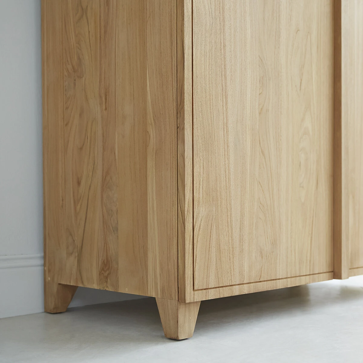 Facile à combiner, l’armoire en teck 210 Greta se marie avec autant de réussite avec notre chevet en teck Nino ou notre commode Lubin qu’avec votre décoration déjà existante.