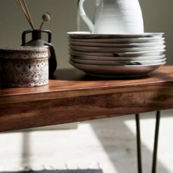 Vous aimerez les lignes épurées, le bois veiné du plus bel effet et les élégants pieds en métal.