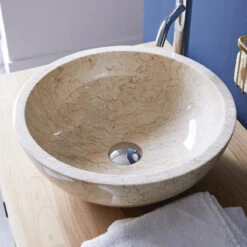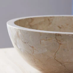 Charmante vasque en marbre de couleur crème et finition lisse brillante.