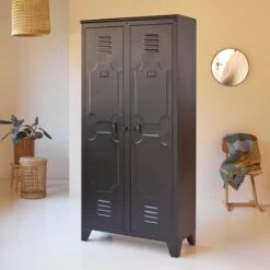 Opter pour l’armoire Industriel, c’est assumer son goût pour le style “factory”. Associez lui le chevet, la commode ou la console… et vous avez le sentiment de dormir dans un loft new-yorkais ! Jouez-la seule et votre chambre s’éclaire de la petite touche de personnalité qui lui manquait ! Grande capacité de rangement assurée par 8 casiers. Fermée par 2 portes.