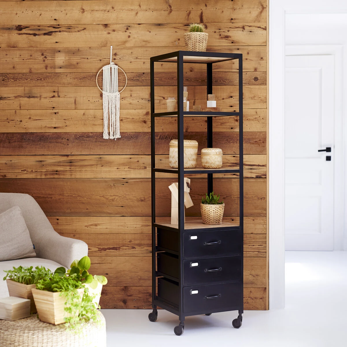 Vous aimerez l’alliance rĂ©ussie entre le bois de manguier et le mĂ©tal noir et la belle capacitĂ© de rangement.