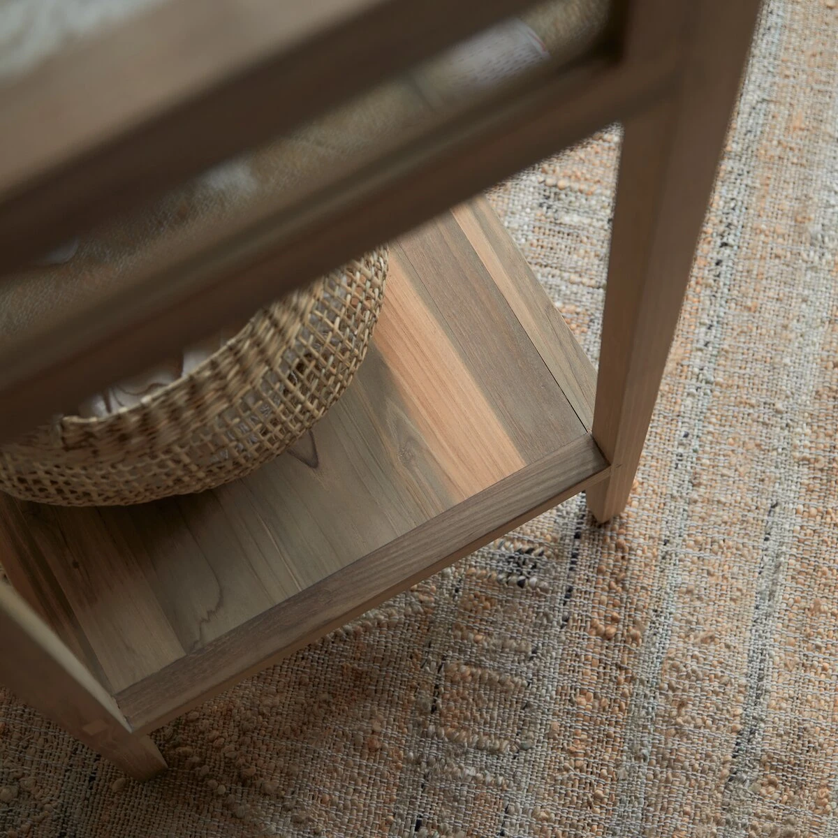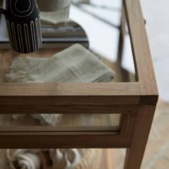 La console vitrée en teck massif recyclé Inès affiche un design épuré, rehaussé d’un singulier compartiment vitré, idéal pour exposer de jolis objets déco ! Élégante, elle trouve sa place dans toutes les pièces de la maison : au séjour, elle se fait desserte, dans le salon vitrine, dans la chambre elle remplace le chevet en une version plus contemporaine… Elle est aussi adaptée aux petits espaces. Bref, un meuble qui séduit par son authenticité, son charme naturel et sa démarche éco citoyenne : le teck qui la compose a déjà vécu une première vie et en plus, il est certifié FSC®.