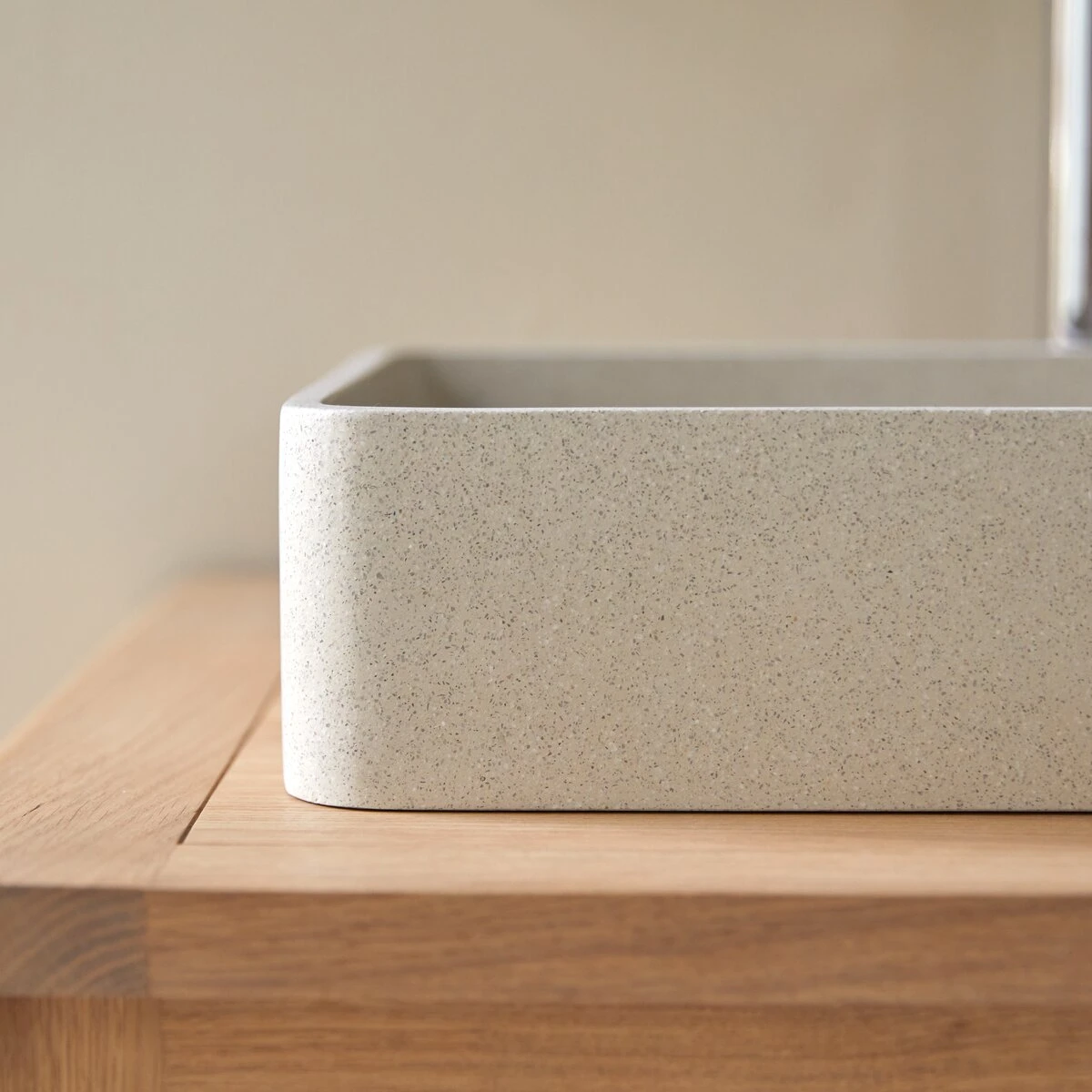 N’hĂ©sitez pas Ă dĂ©couvrir aussi nos autres vasques Ă poser en terrazzo: version carrĂ©e ThaĂŻs – version ronde Gina et Micha.