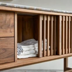 La console en noyer et terrazzo premium appartient à notre collection Isaure, une série de meubles haute qualité, à la modernité tout en sobriété. Le noyer massif qui la compose est certifié FSC®, la garantie qu’il provient de forêts gérées de manière responsable. Il est huilé pour le rendre facile à vivre au quotidien. N’hésitez pas à compléter cette belle collection avec des meubles à l’esprit Naturel.