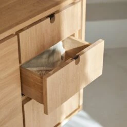 Epuré, authentique et fonctionnel, le buffet en chêne massif Jonàk affiche un style scandinave très apprécié dans les intérieurs d’aujourd’hui ! On aime la blondeur de son bois, sa généreuse capacité de rangement et son design tout en sobriété. Ses deux portes battantes s’ouvrent sur un large espace de rangement dans lequel linge de maison et vaisselle trouvent facilement leur place. Dans les tiroirs, on placera les objets plus petits ou moins encombrants.