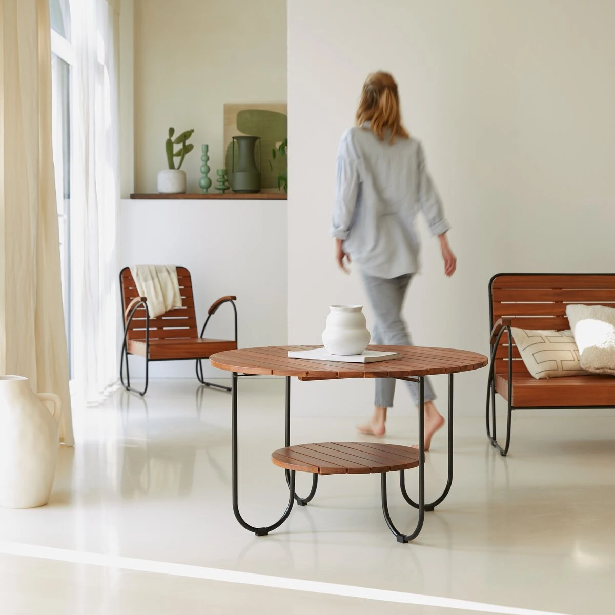 Originale et pleine de personnalitĂ©, la table basse en acacia massif Key Wood vous sĂ©duira au premier regard ! Entre inspiration industrielle et tendance In and Out, elle trouve sa place dans le salon, une chambre spacieuse⊠et aux beaux jours, sur la terrasse ou le jardin dâhiver. On aime le mariage rĂ©ussi du mĂ©tal et du bois lattĂ©, le design tout en rondeur et le double plateau qui permet de glisser magazines, tĂ©lĂ©commandes, objets dĂ©co⊠La sobriĂ©tĂ© de sa ligne autorise de nombreuses associations de style et si elle est parfaite associĂ©e au fauteuil et au banc en acacia massif Key Wood, elle sâintĂšgre avec autant rĂ©ussite Ă votre intĂ©rieur.