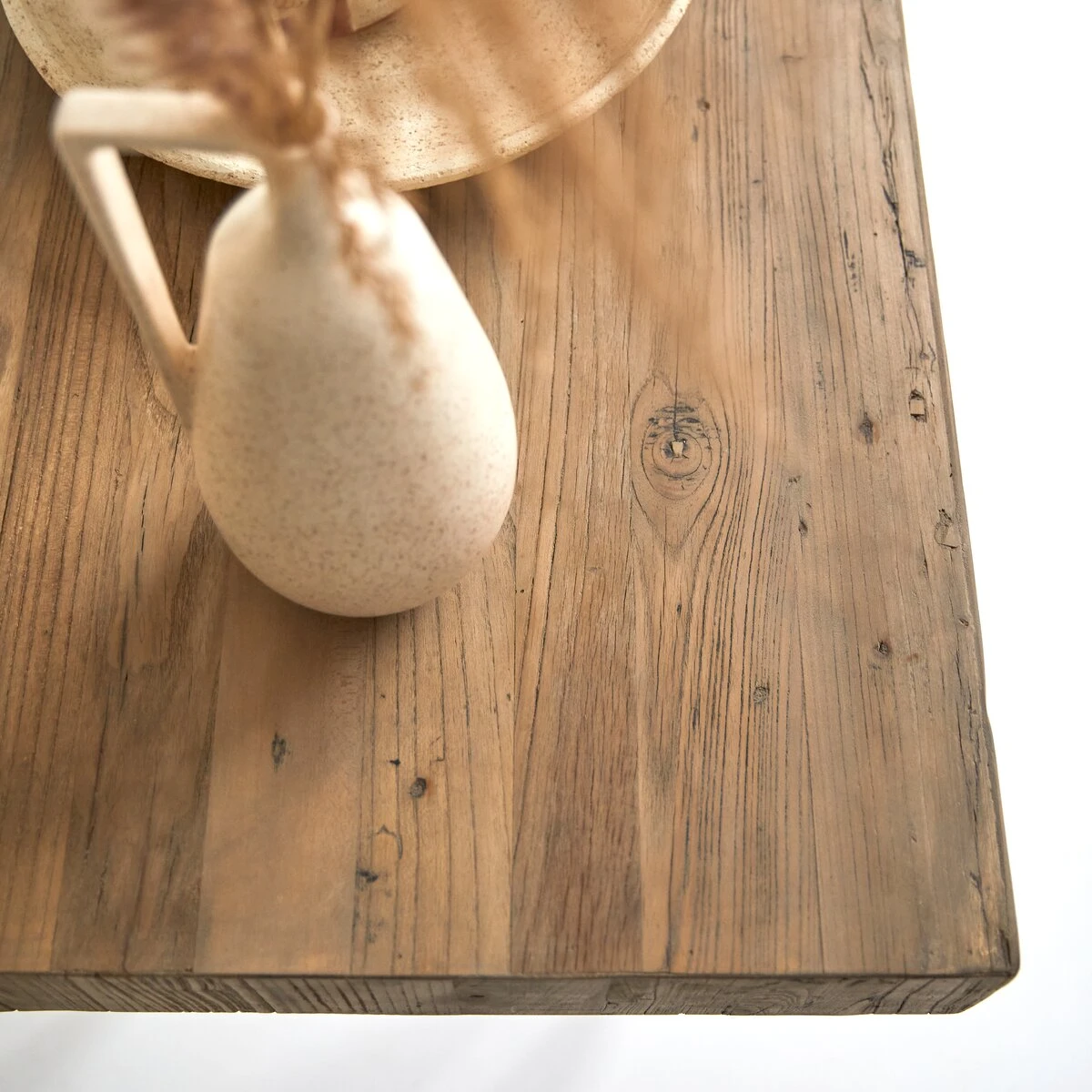 La console en pin et orme recyclé Kim affiche un réel supplément d’âme, qualité qu’on retrouve sur les meubles de notre gamme à l’esprit naturel.