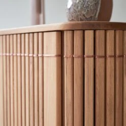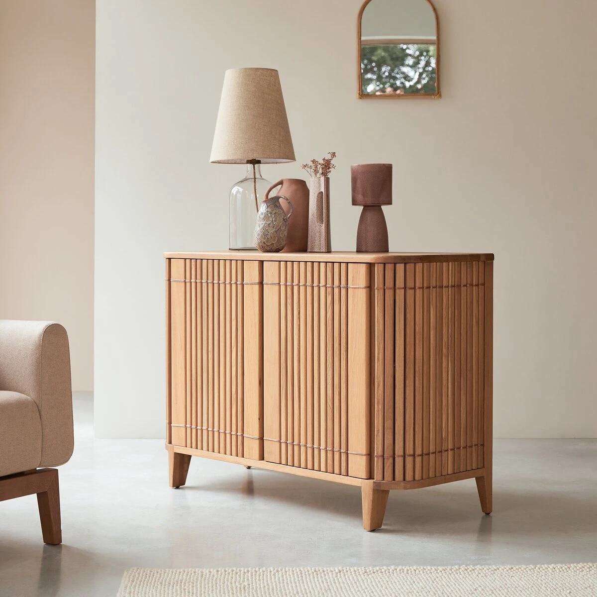 Au sĂ©jour, au salon⊠mĂȘme dans le bureau ou dans la chambre, le buffet en chĂȘne 115 Koppar accueille avec style vaisselle, linge de maison, vĂȘtements⊠Un meuble auprĂšs duquel on a plaisir Ă vivre au quotidien !