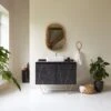 Verni pour résister aux éclaboussures et à l’usure, le meuble sous vasque en palissandre massif Kwarto est conçu pour recevoir une vasque à poser. Au gré de vos envies, vous la choisirez en  marbre, en céramique ou en terrazzo.