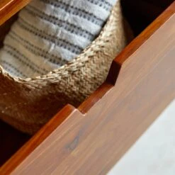 Le meuble sous vasque en palissandre massif Kwarto conjugue avec talent, esthĂ©tique et fonctionnalitĂ© ! On aime le charme de cette essence de bois dense et durable, au veinage apparent du plus bel effet. Très pratique dans la salle de bain ou le cabinet de toilette, ce petit meuble vous permet de ranger avec Ă©lĂ©gance les serviettes de toilette et les accessoires de beautĂ© qui trouvent naturellement leur place dans le grand tiroir.Â