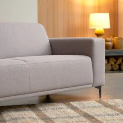 Allure contemporaine et sobriĂ©tĂ© de lignes pour le canapĂ© Lars. TravaillĂ© dans un tissu tissĂ© fin pour ĂŞtre tout doux, durable et certifiĂ© OEKO-TEX® – ce qui garantit l’absence de substances ou de produits chimiques nocifs – il offre des pieds fins en mĂ©tal. Son coloris gris et son minimalisme permettent de le marier avec tout type de dĂ©coration intĂ©rieure. Le canapĂ© Lars existe aussi en Ă©cru.