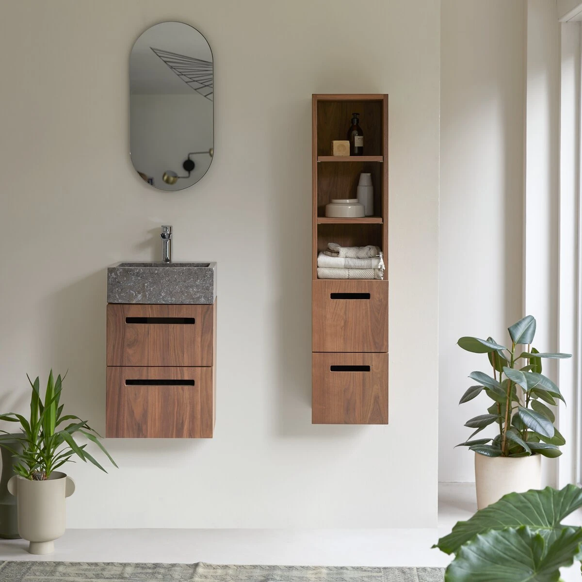 Réalisée avec du bois certifié FSC®, ce qui garantit qu’il provient de forêts durablement gérées, la colonne en noyer massif Line est déjà huilée ce qui lui permet de résister aux éclaboussures et à l’humidité. La colonne Line vous est aussi proposée en version teck massif.