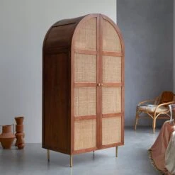 IdĂ©ale dans la chambre Ă coucher, l’armoire en orme et rotin Lisbeth s’installe avec le mĂŞme talent dans une entrĂ©e spacieuse en version vestiaire, pour complĂ©ter un espace dressing… mĂŞme dans le sĂ©jour ! Finition vernie. Â