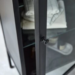 Vous apprécierez le côté très pratique de sa porte vitrée qui permet de retrouver facilement ce dont on a besoin et de mettre en valeur de jolis objets ou une pile de serviettes aux couleurs assorties.