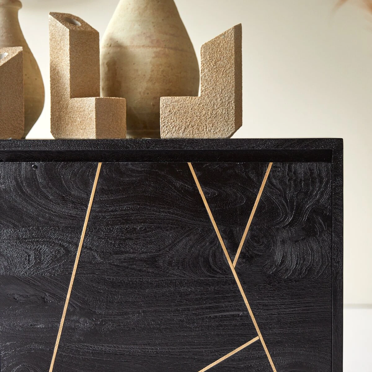 Vous serez séduit par son élégance, caractérisée par les pieds épingles en métal ainsi que les lignes ornées de métal peint en couleur laiton qui habillent les façades en manguier.