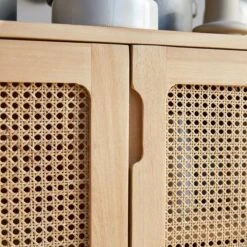 Le buffet en orme massif et cannage Luis conjugue avec talent deux matières authentiques : le cannage à nouveau très en vogue et l’orme dont l’élégance naturelle et la noblesse ne sont plus à démontrer.