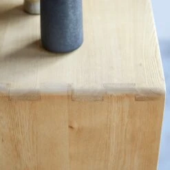 La colonne basse en orme trouve aussi facilement sa place dans la salle de bain que dans les autres pièces de la maison. On aime l’originalité de son design, la blondeur et la douceur de ses lignes, sa résistance à l’eau (elle est livrée déjà huilée) et son assemblage traditionnel à queue droite.